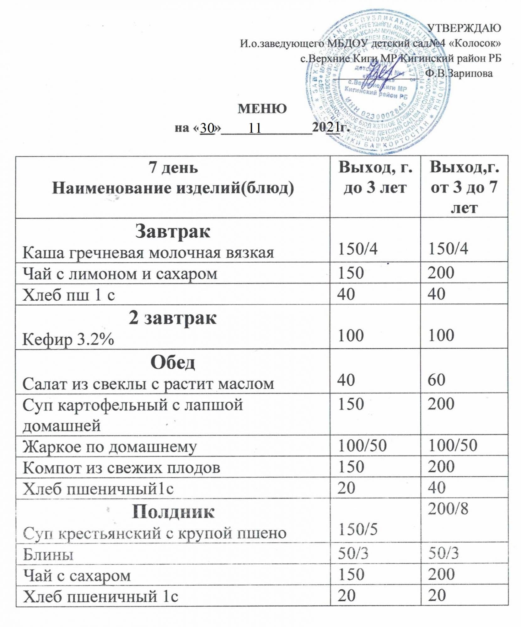 Акт замены блюд