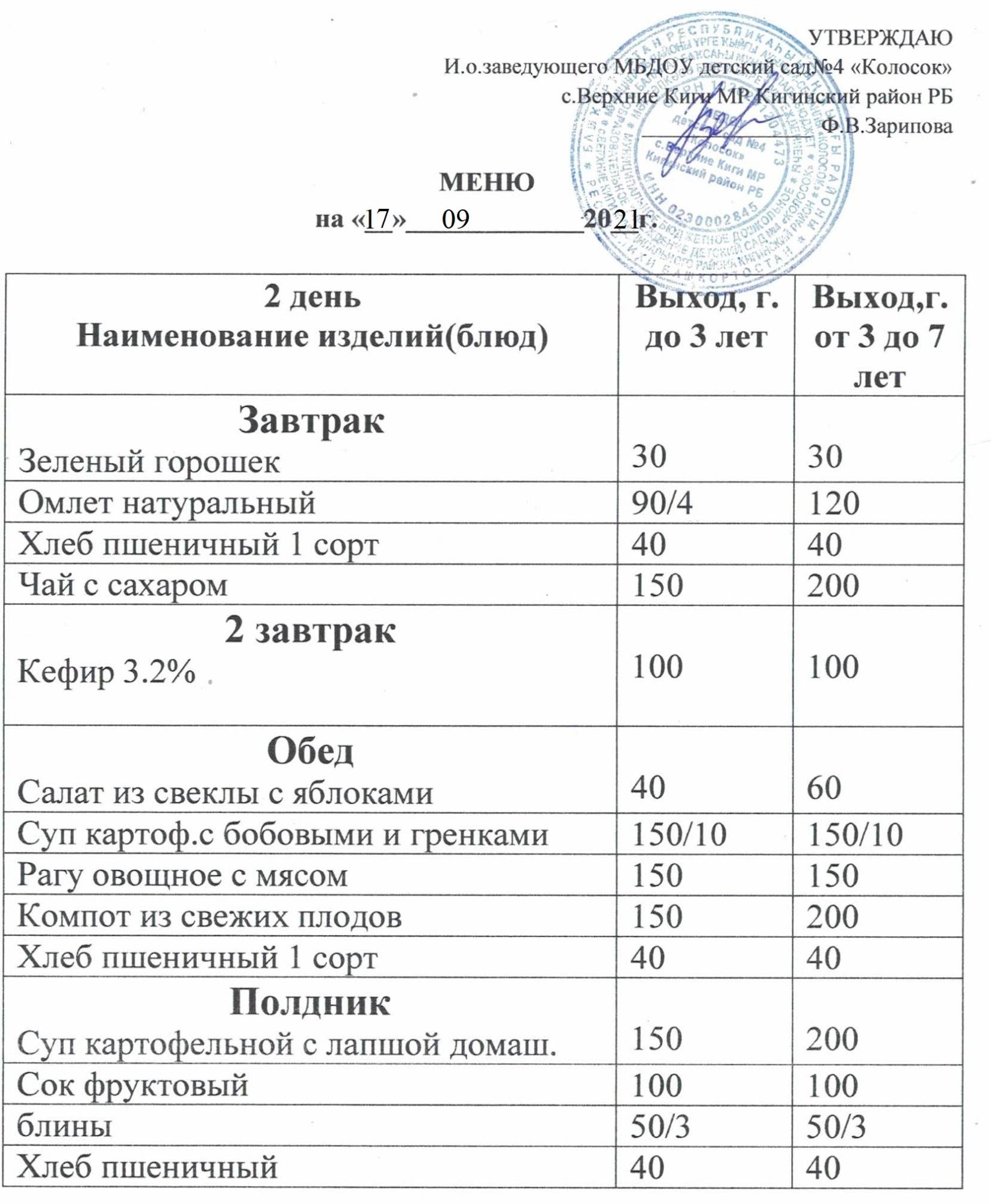 Акт замены блюд