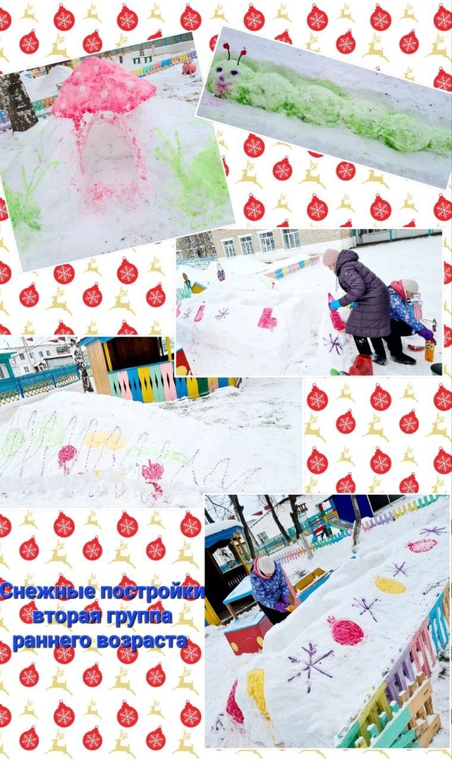 В нашем детском саду появились снежные постройки. Воспитатели старались придумать интересную идею, чтобы с помощью помощников-родителей воплотить ее в жизнь. Каждый участок нашего детского сада стал необыкновенным, как в сказке. Необычно красивые, оригинальные по своему замыслу снежные постройки появились этой зимой на территории нашего детского сада: персонажи из детских сказок, животные, горки для катания, лабиринты и др. Поражающие воображение снежные цветные крепости и домики, герои мультфильмов и сказок, новогодние персонажи, причудливые горки... Даже не верится, что всё это великолепие было создано из снега..